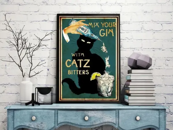Mix Your Gin With Catz Bitters Cat Lover Poster Cat Lover Gift Wine Lover Gift Home Decor Wall Decor Cat Artwork Wall Art Poster