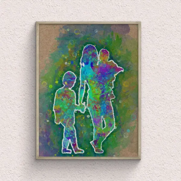 Mom And Childs Watercolor Wall Art Boho Style Living Room Nursery Room Decoration Family Present Mother S Day Gift