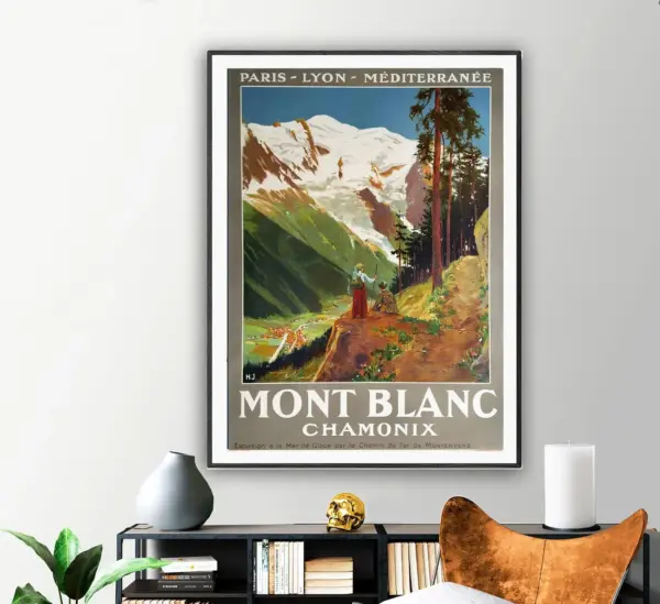 Mont Blanc Chamonix Vintage Travel Poster Poster Paper Sticker Or Canvas Print Gift Idea