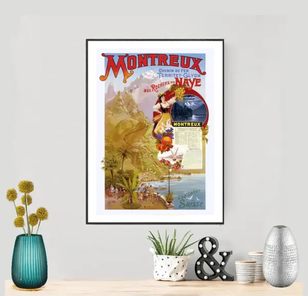 Montreux Chemin De Fer Territet Glyon Vintage Travel Poster Poster Paper Sticker Or Canvas Print Gift Idea