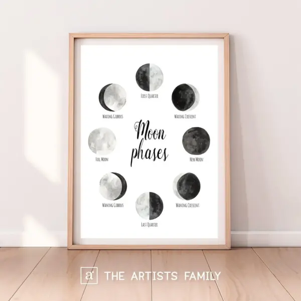 Moon Phases Downloadable Prints Lunar Water Color Montessori Educational Posters For Kids Boys Girls Children Rooms Learning Painting Luna