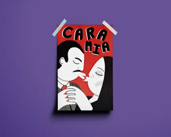 Morticia Gomez Print Cara Mia The Addams Family Wall Hanging Husband Wife Spooky Art Movie Illustration