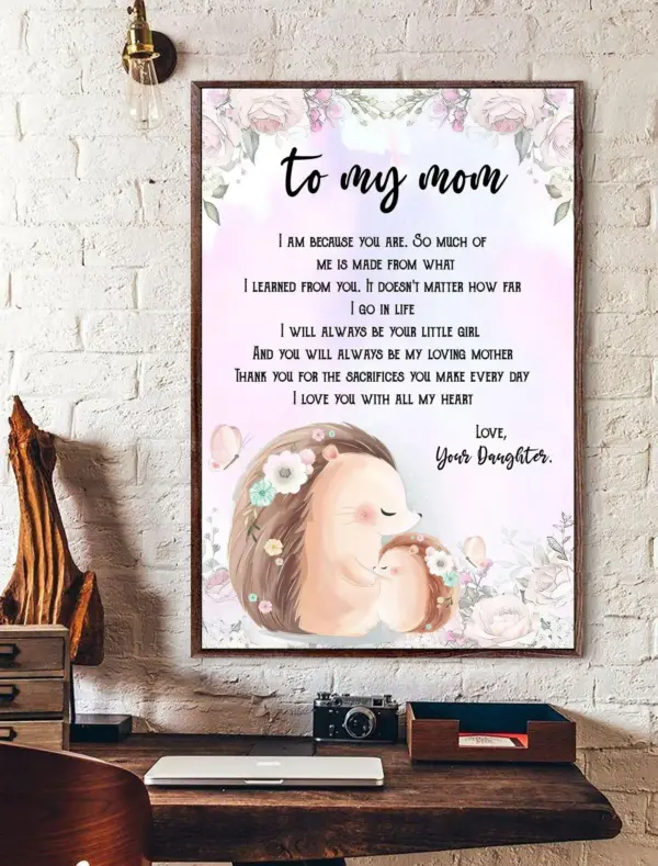 Mother S Day Poster To My Mom Canvas Hedgehog Mom Daughter Poster Gift For Mom From Daughter To Mom Poster Custom Mother Poster Aq