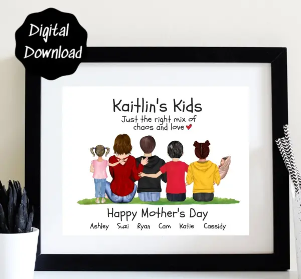 Mothers Day Gift Custom Family Portrait Family Print Family Illustration With Kids Personalized Gift For Mom Gift From Husband