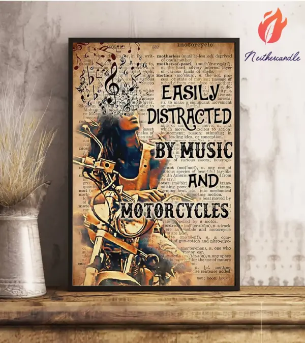 Motorcycle Poster Easily Distracted By Music And Motorcycles Wall Art Home Decor Poster Print