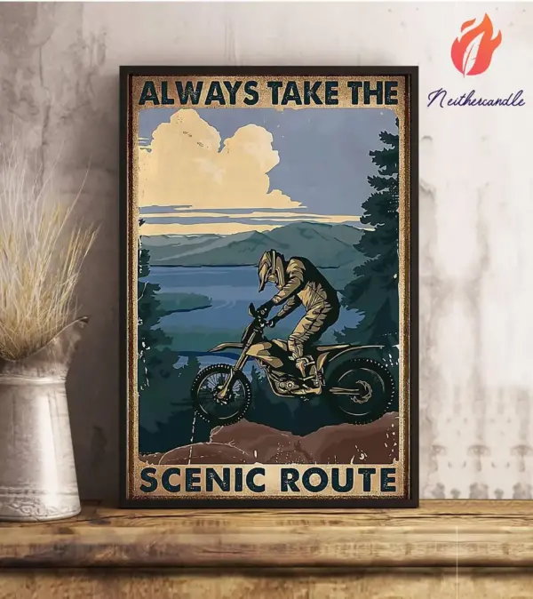 Motorcycle Poster Motorcycle Always Take The Scenic Route Wall Art Home Decor Poster Print