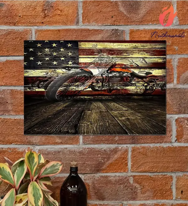 Motorcycle Poster Motorcycle And American Flag Art Wall Art Home Decor Poster Print