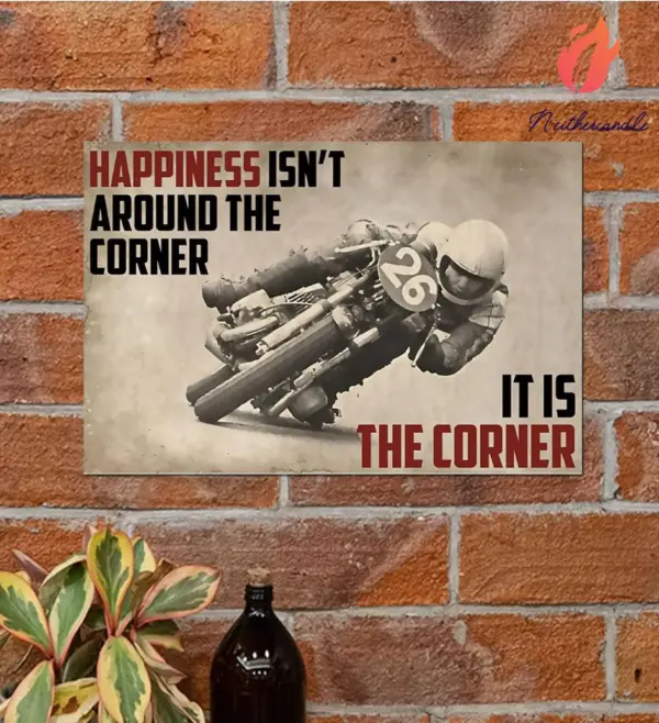 Motorcycle Poster Motorcycle Happiness Isn T Around The Corner Wall Art Home Decor Poster Print