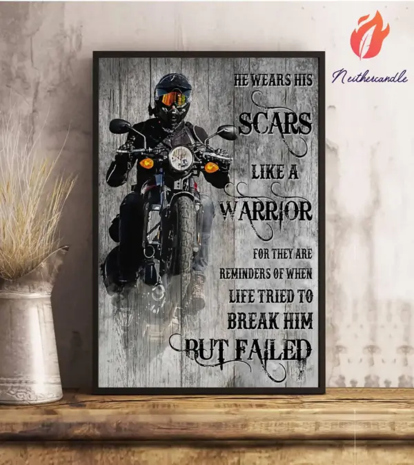 Motorcycle Poster Motorcycle He Wears His Scars Like A Warrior Wall Art Home Decor Poster Print