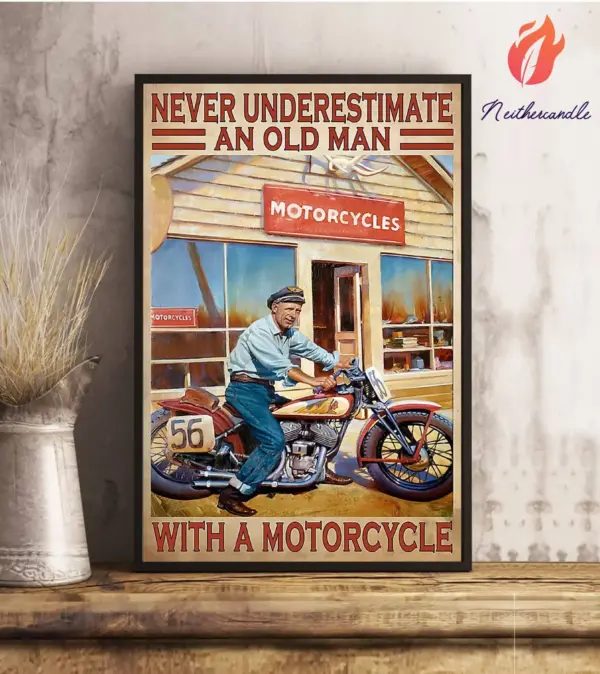 Motorcycle Poster Never Underestimate An Old Man With A Motorcycle Wall Art Home Decor Poster Print