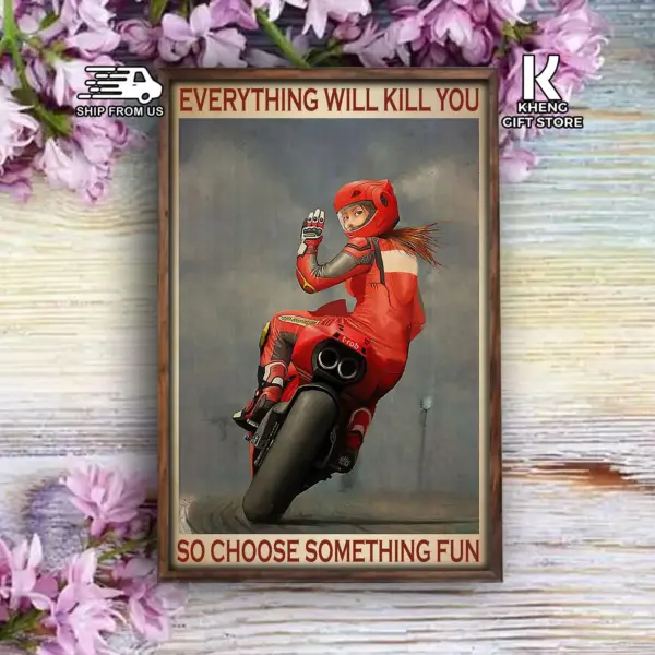 Motorcycle Racing Racer Rider Biker Girl Everything Will Kill You So Choose Some Thing Fun Poster Home Living Deco