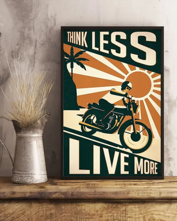 Motorcycle Think Less Live More Vertical Poster Motorcycle Wall Decoration Motorcycle Wall Art No Framed