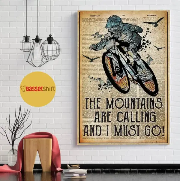 Mountain Are Calling And I Must Go Cycling Vintage Poster