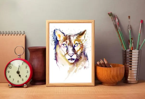 Mountain Lion Watercolor Portrait Instant Cougar Painting Animal Wall Art Wildlife Poster Big Cat Felines Mountain Cabin Art