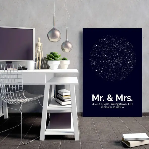 Mr And Mrs Sign Wedding Date Poster Special Date Print Love Coordinates Wedding Sign Custom Wedding Present Shower Gift Night Sky