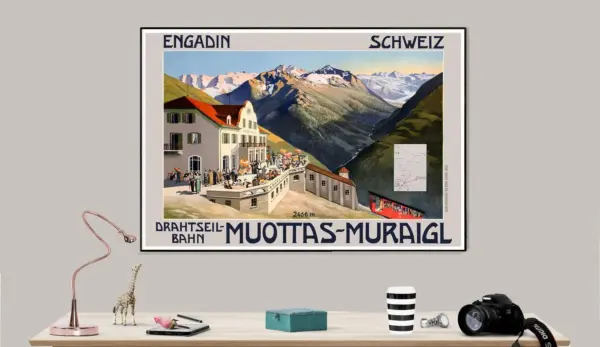 Muottas Muragl Engadin Suisse Vintage Travel Poster Poster Print Sticker Or Canvas Print Gift Idea Christmas Gift