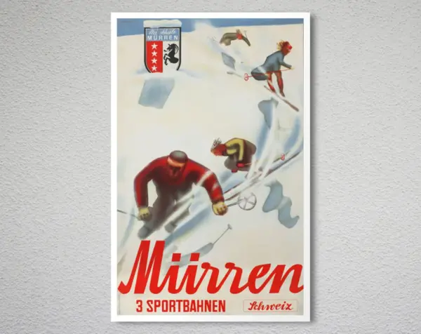 Murren Switzerland Vintage Travel Poster Poster Paper Sticker Or Canvas Print Gift Idea Ski Art