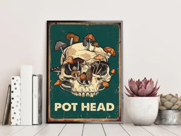 Mushrooms Pot Head Poster Skull Poster Hippie Wall Decor Hippie Art Print Mushroom Poster Psychedelic Trippy Poster