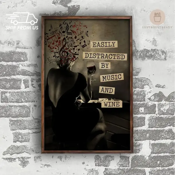 Music And Wine Lovers Gifts Easily Distracted By Music And Wine Poster Wall Art Print Home Living Decor Poster