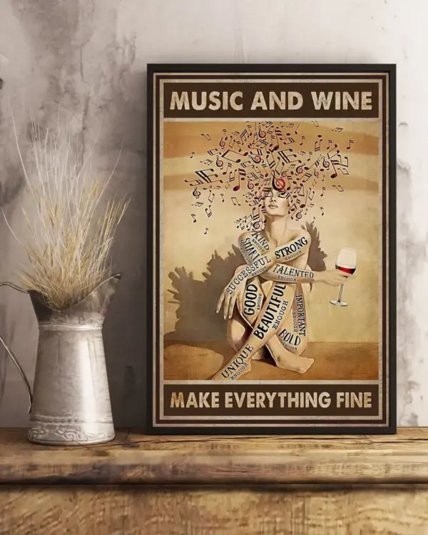 Music And Wine Make Everything Fine Vertical Poster Home Decor Art Gifts For Music And Wine Lover No Framed