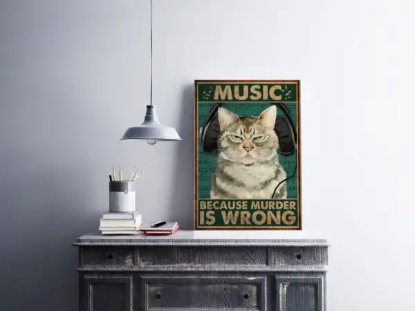 Music Cat Poster Music Because Murder Is Wrong Poster Grumpy Cat Funny Cat Print Music Poster Music Gift Cat Gift Home Decor
