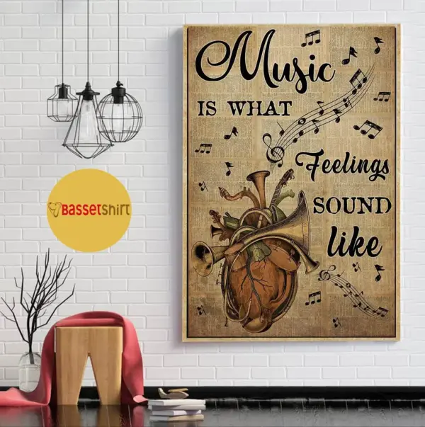 Music Is What Feelings Sound Like Instrument Vintage Poster