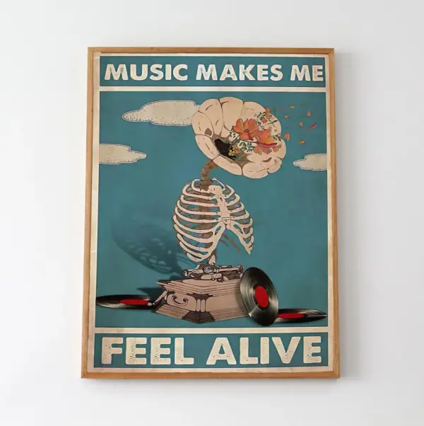 Music Makes Me Feel Alive Poster Dancing Wall Art Music Lover Gift Vintage Music Canvas Wall Art Gift For Music Lover Vinyl Wall Art