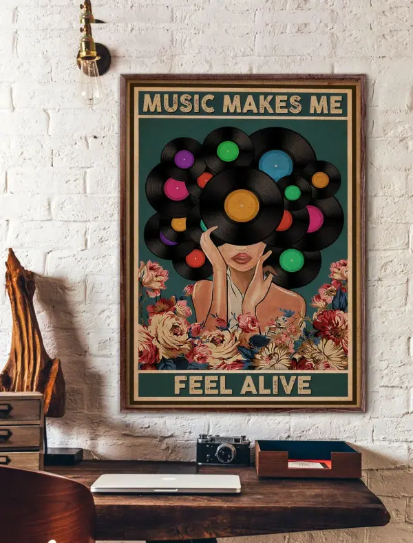 Music Makes Me Feel Alive Poster Music Poster Love Music Canvas Print Black Girl Art Print Music Lovers Gift Vintage Vinyl Music Poster