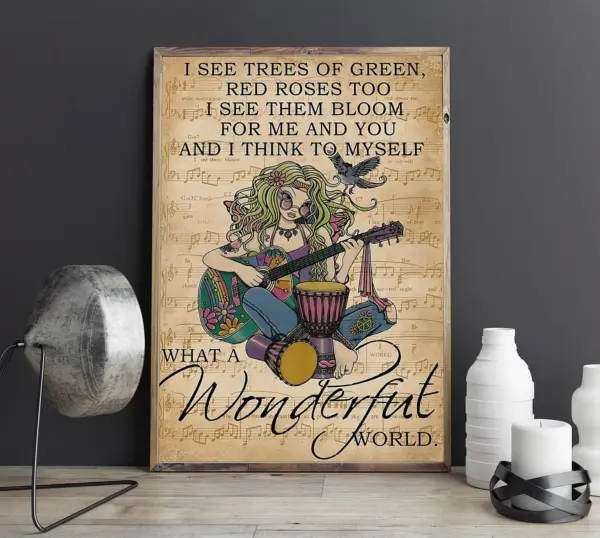 Music Sheet Wonderful World Guitar Hippie Vertical Poster Vintage Poster Vintage Art Print Vintage Hippie Poster
