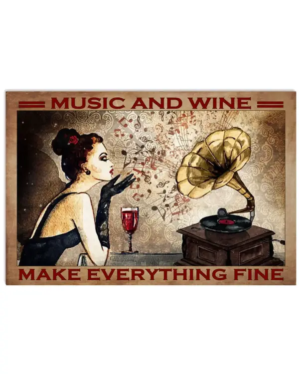 Music Wine Make Everything Fine Poster Girl And Wine Poster Girl Loves Wine Music And Wine Poster No Frame