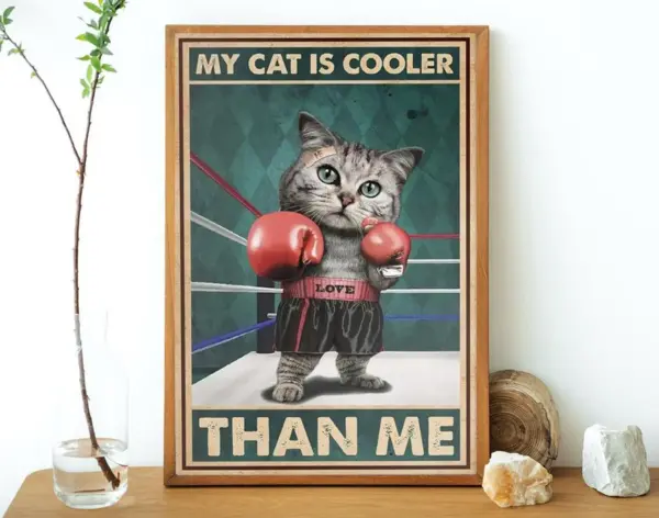 My Cat Cooler Than Me Poster Cat Boxing Poster Gift For Cat Lovers Wall Art Vintage Cat Poster Gift For Cat Lovers Poster No Framed