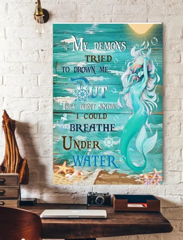 My Demons Try To Drown Me Mermaid Vertical Print Poster