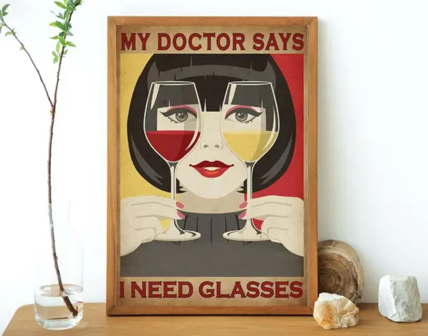 My Doctor Says I Need Glasses Poster Wine Lover Poster Retro Girl And Wine Poster No Frame
