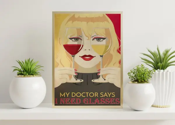 My Doctor Says I Need Glasses Poster Wine Poster Wine Lover Gift Love Wine Wall Art Gift For Her Alcohol Lovers Vertical Poster