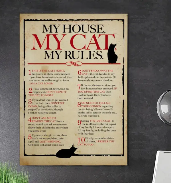 My House My Cat My Rules Poster Cats Love Poster Cats Lover Gift Custom Pet Art Custom Rules Poster Home Decor Cats Lover Room Decor