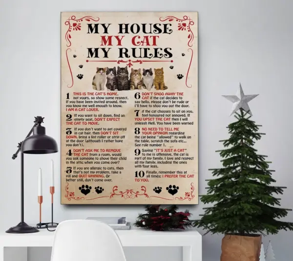 My House My Cat My Rules Poster Cats Love Poster Cats Lover Gift Custom Pet Art Custom Rules Print Home Decor Cats Lover Room Decor