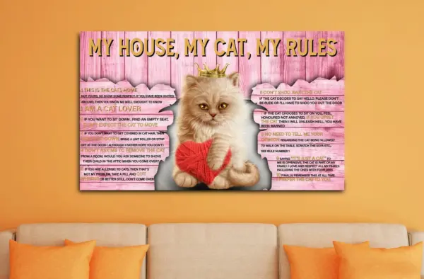 My House My Cat My Rules Poster Cute Cat Poster Cat Poster Print Wall Art Wall Decorationgift For Cat Lovers Cat Rules Wall Decor
