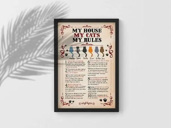 My House My Cats My Rules Poster Cat Print Cat Custom Name Poster Cat Lover Gift Cat Rule Art Black Cat Wall Decor Signs For Home