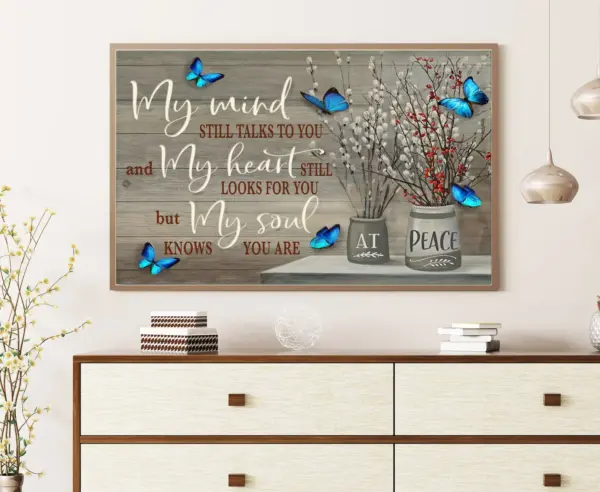 My Mind Butterfly Wall Art Poster Blue Butterfly Grieving Sign Blue Butterfly Rustic Memorial Rustic Butterfly Art Butterfly Painting