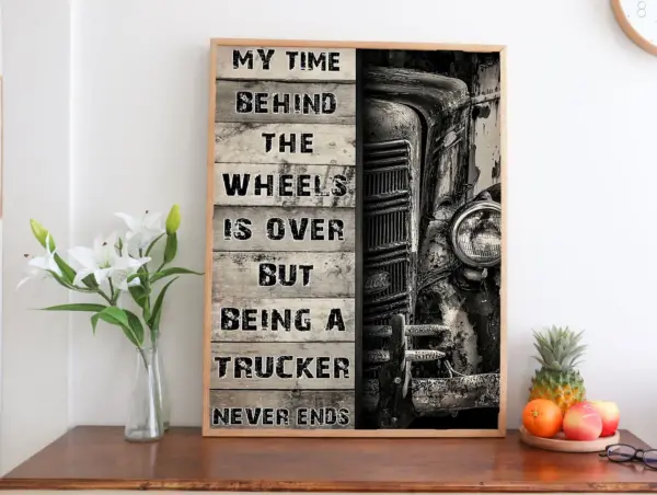My Time Behind The Wheels Is Over But Being A Trucker Never Ends Poster Trucker Lifestyle Poster Trucker Knowledge Poster