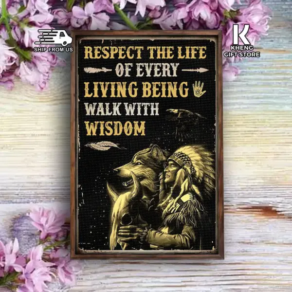 Native American Wolf Respect The Life Of Every Living Being Walk With Wisdom Poster Home Living Decor Poster