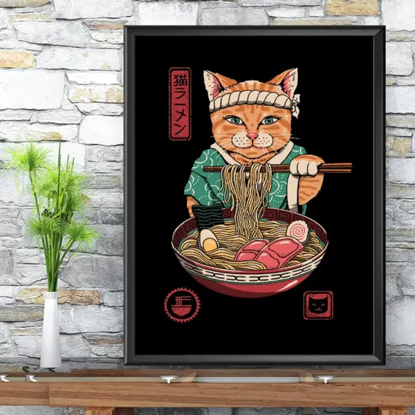 Neko Ramen Cat Poster Black Cat Poster Cat Vintage Poster Cat Lover Gift