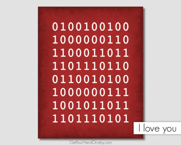 Nerdy I Love You Binary Code Wall Art Computer Science Print Computer Geek Gifts