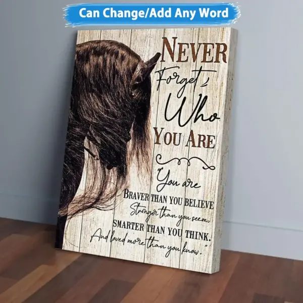 Never Forget Who You Are Horse Vertical Canvas Wall Art Custom Wall Art Family Hang Print Poster Home Decor Housewarming Hanging Gift