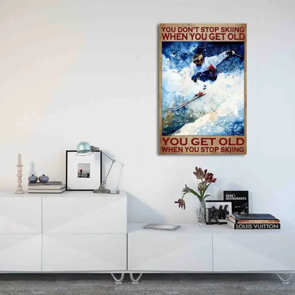 Never Stop Skiing Vertical Poster Skiing Travel Poster Outdoor Adventure Backcountry Skier Vintage Ski Poster