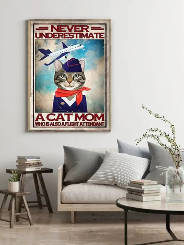 Never Underestimate A Cat Mom Who Is Also A Flight Attendant Cat Poster Cute Cat Poster Cat Wall Decor Cat Wall Hanging Attendant Travel