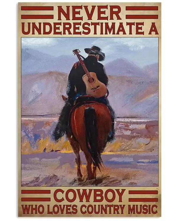 Never Underestimate A Cowboy Who Loves Country Music Poster