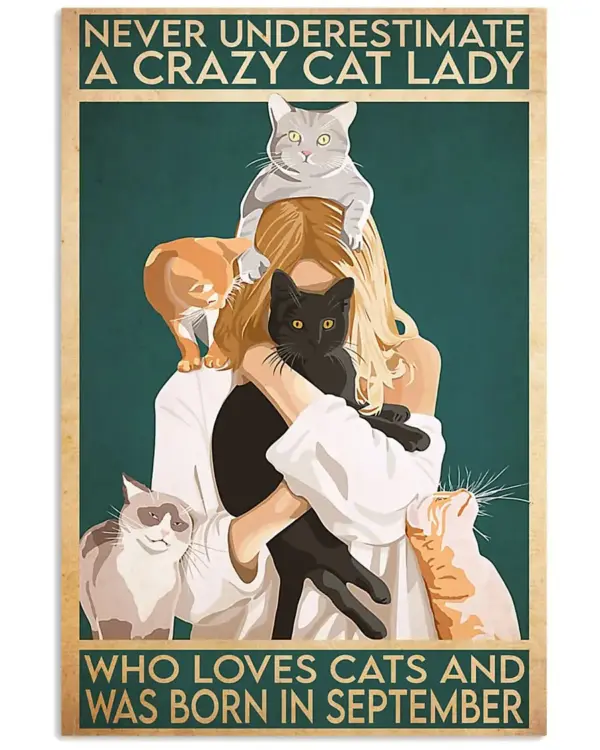 Never Underestimate A Crazy Cat Lady Who Loves Cats And Was Born In September Poster
