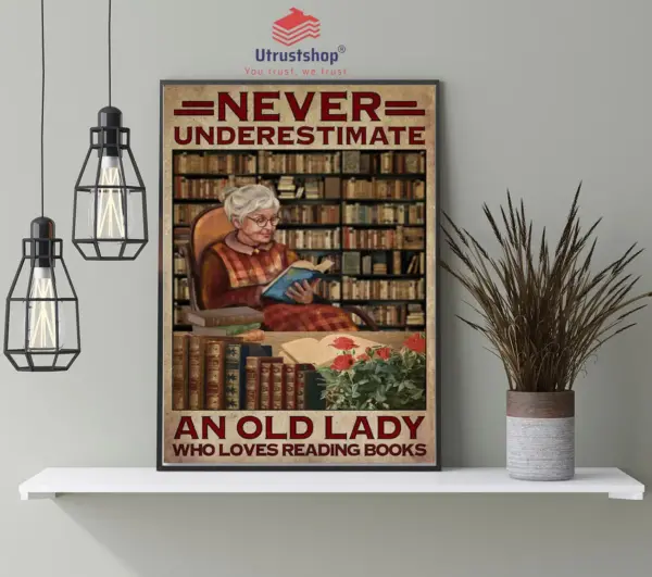 Old Lady Reading Books Poster