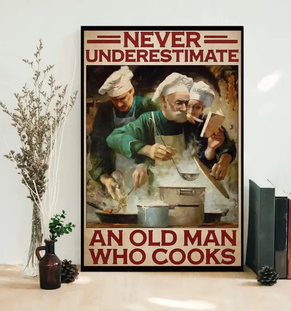 Never Underestimate An Old Man Who Cooks Poster Canvas
